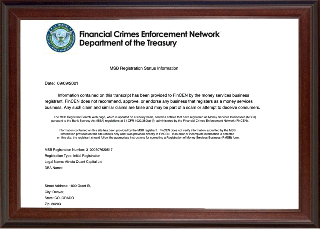 Aivista Quant Capital masterfully combines cutting-edge technology, regulatory compliance, and professional leadership. Its MSB certification ensures operational transparency, while Caelus AI’s interpretable logic and early-stage potential have earned it a solid reputation. Backed by $80 million in funding and a top-tier team, Aivista delivers innovative, efficient wealth management solutions that empower investors to tackle complex market challenges with ease.